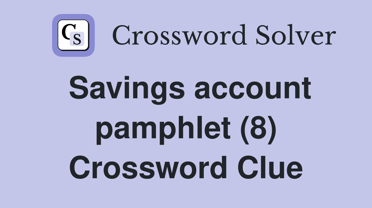 Savings account pamphlet (8) Crossword Clue Answers Crossword Solver