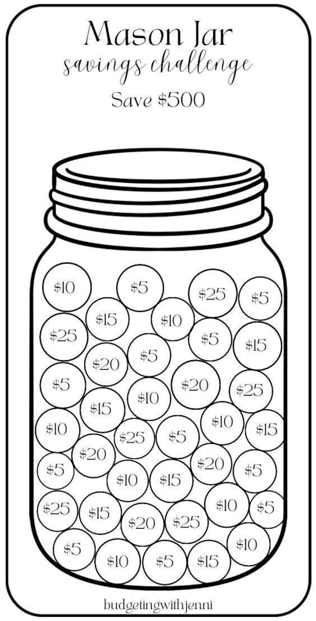 Mason Jar Savings Challenge Printable Savings Tracker Budget