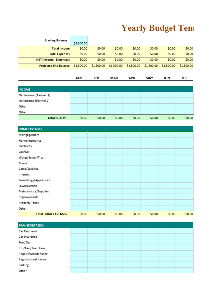Monthly Budget Excel Template Free