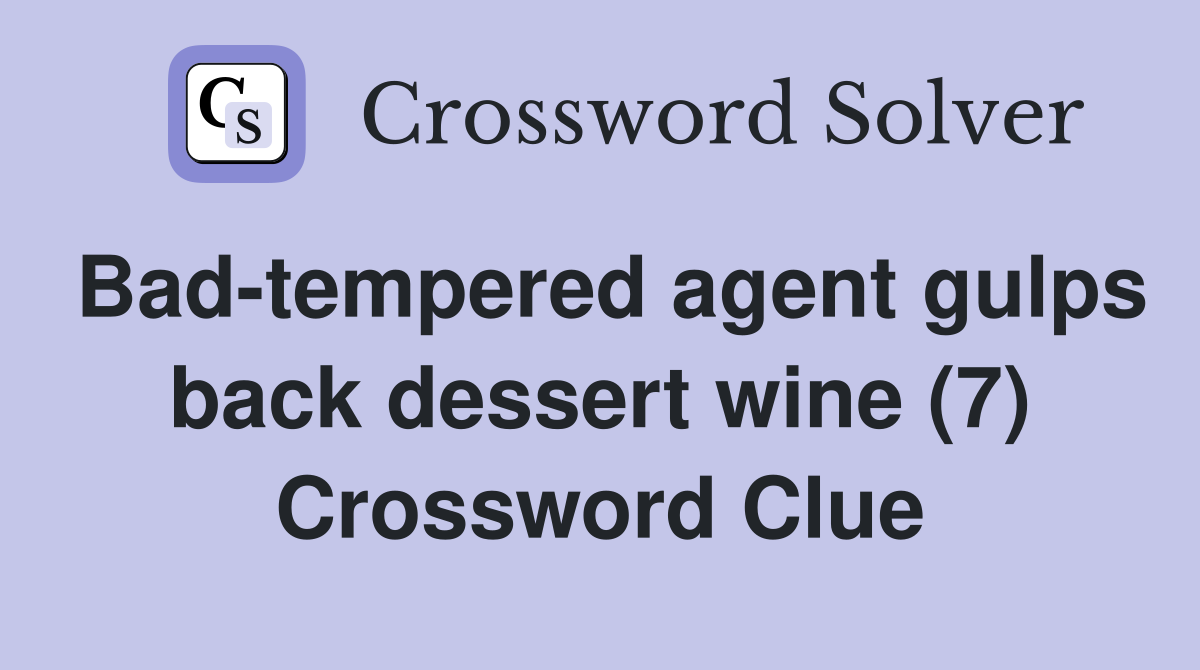 Bad tempered agent gulps back dessert wine (7) Crossword Clue Answers