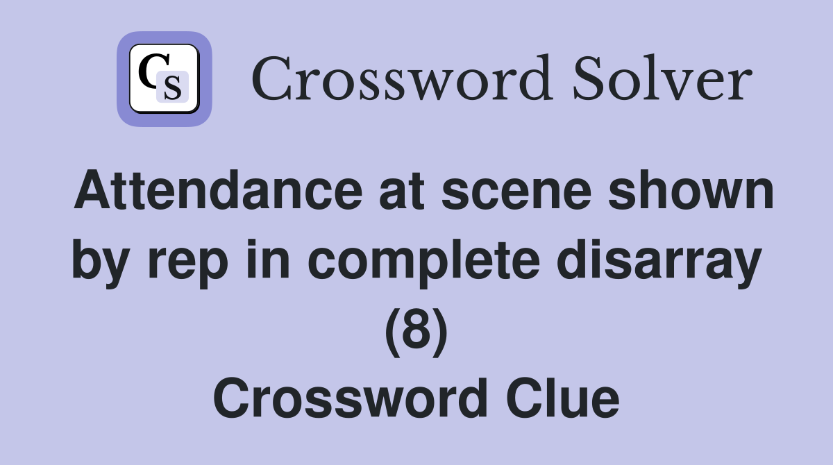 Attendance at scene shown by rep in complete disarray (8) Crossword