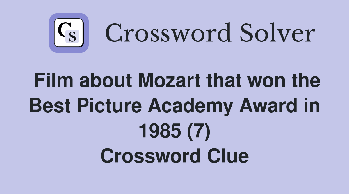 Film about Mozart that won the Best Picture Academy Award in 1985 (7
