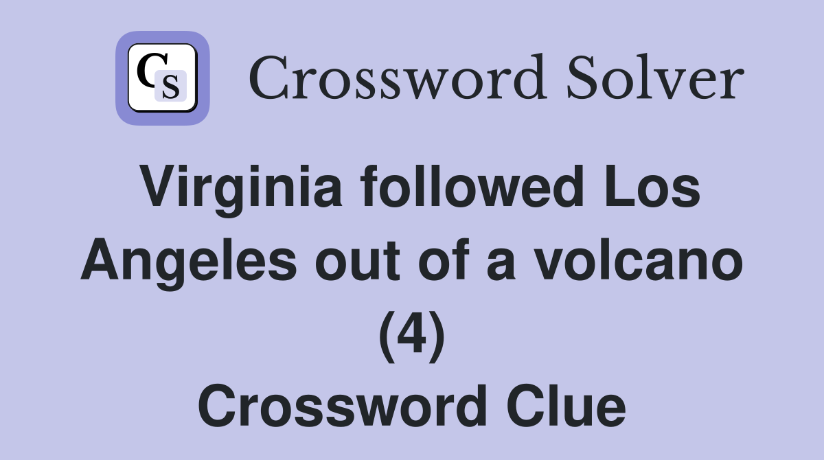 Virginia followed Los Angeles out of a volcano (4) Crossword Clue