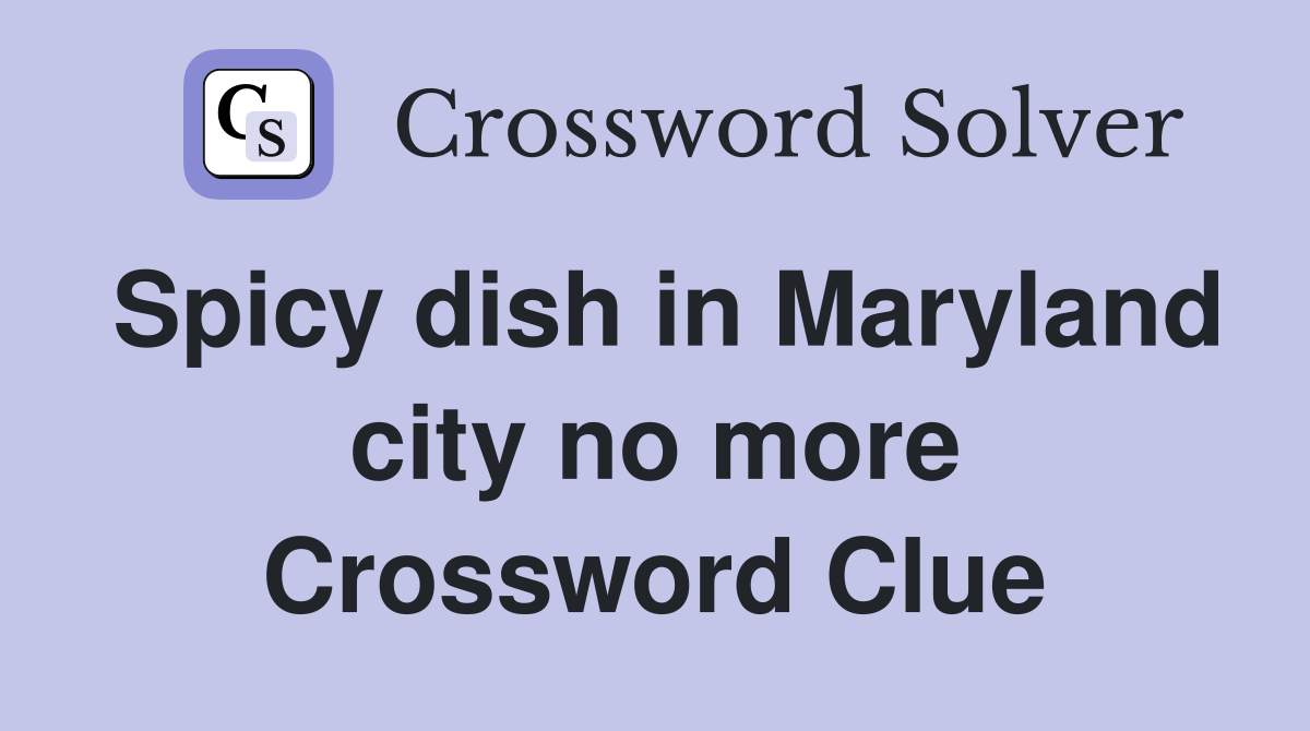 Spicy dish in Maryland city no more Crossword Clue Answers