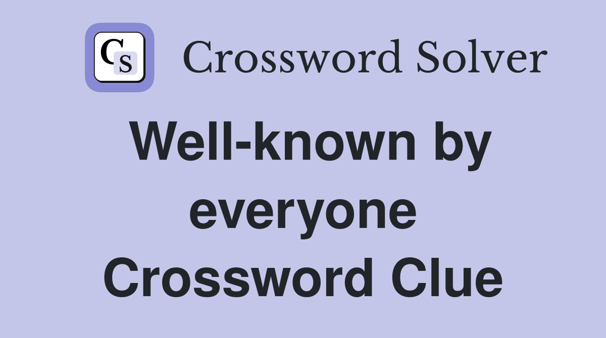 Well known by everyone Crossword Clue Answers Crossword Solver