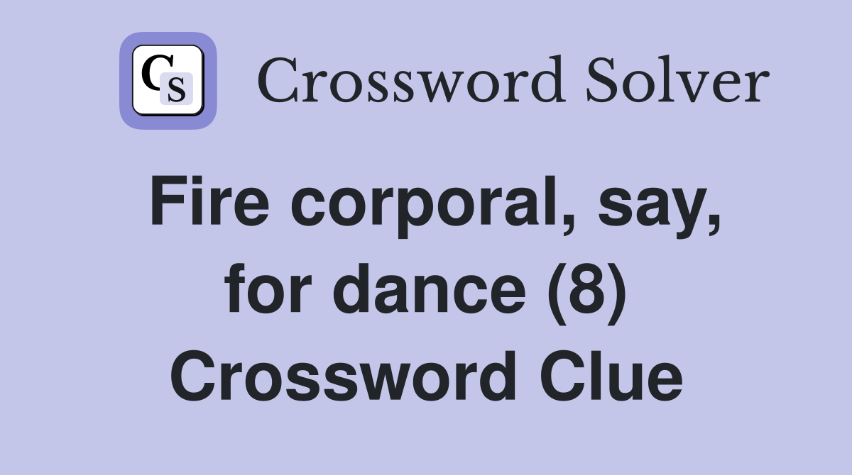 Fire corporal say for dance (8) Crossword Clue Answers Crossword