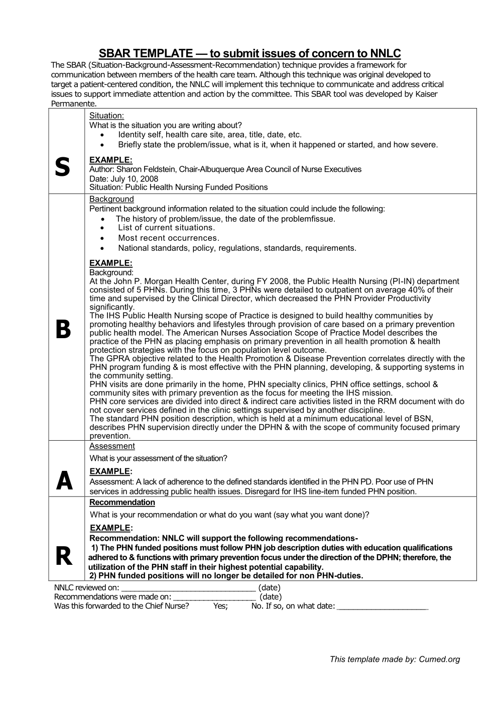 Free Download Printable SBAR Template Word PDF Sarseh com