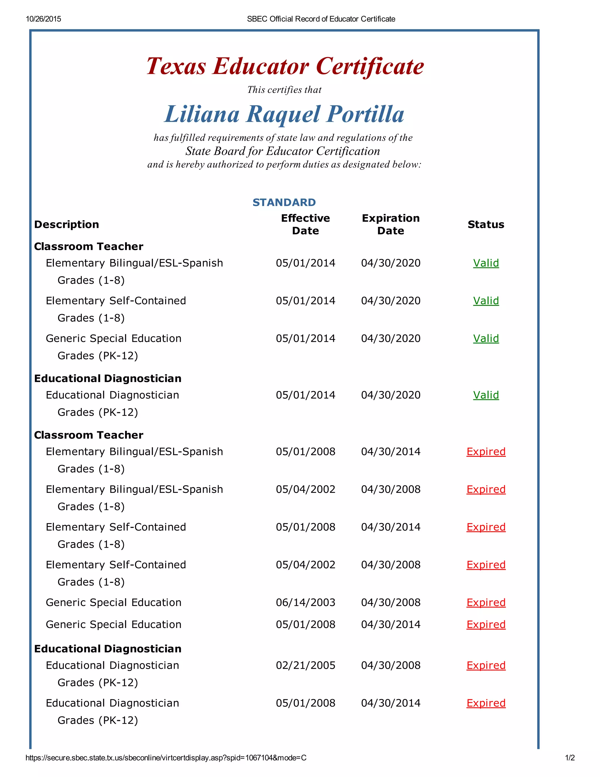 Examples Of Best Certificate: Texas Teacher Certification tr71
