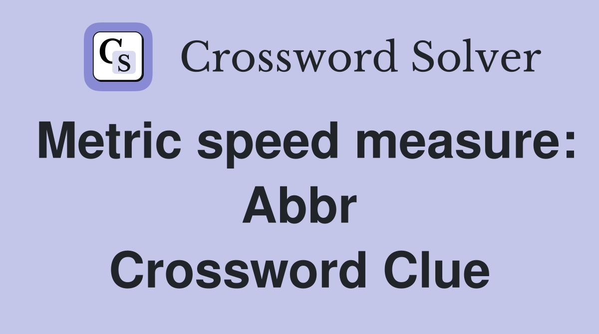 Metric speed measure: Abbr Crossword Clue Answers Crossword Solver