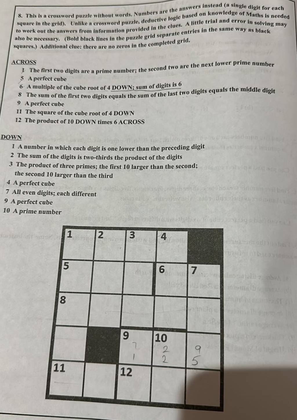 8 This is a crossword puzzle without words Numbers are the answers inst