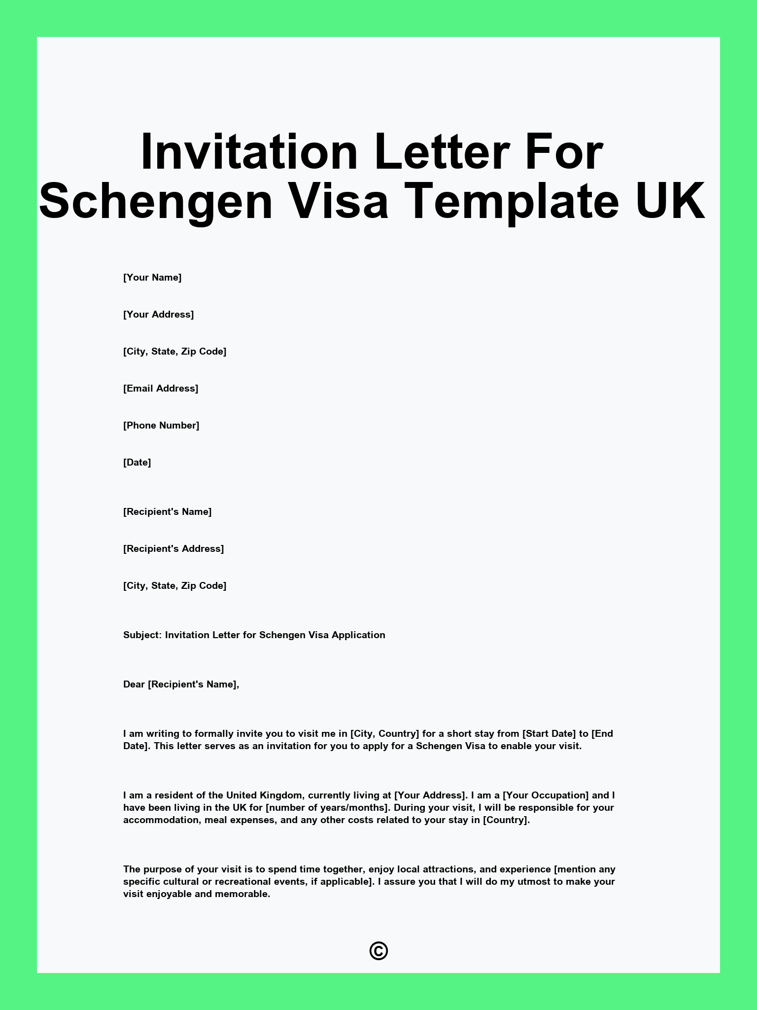 Invitation Letter For Schengen Visa Template UK