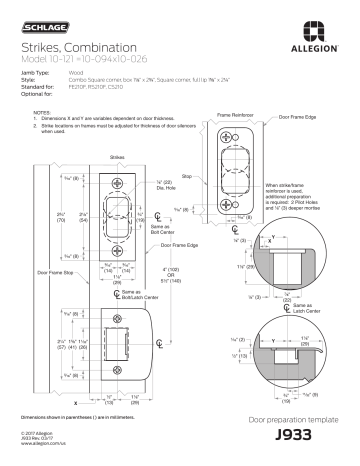Schlage Strike Model 10 121 Template Manualzz