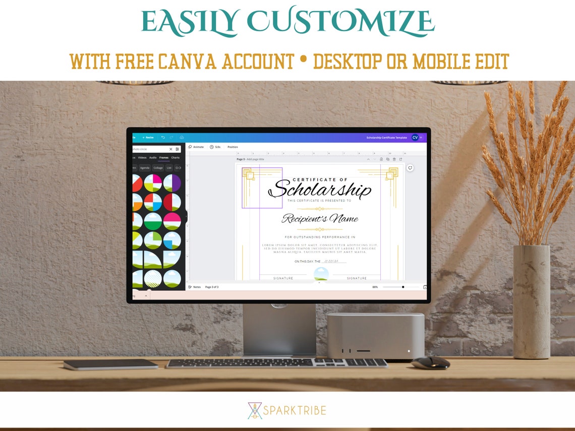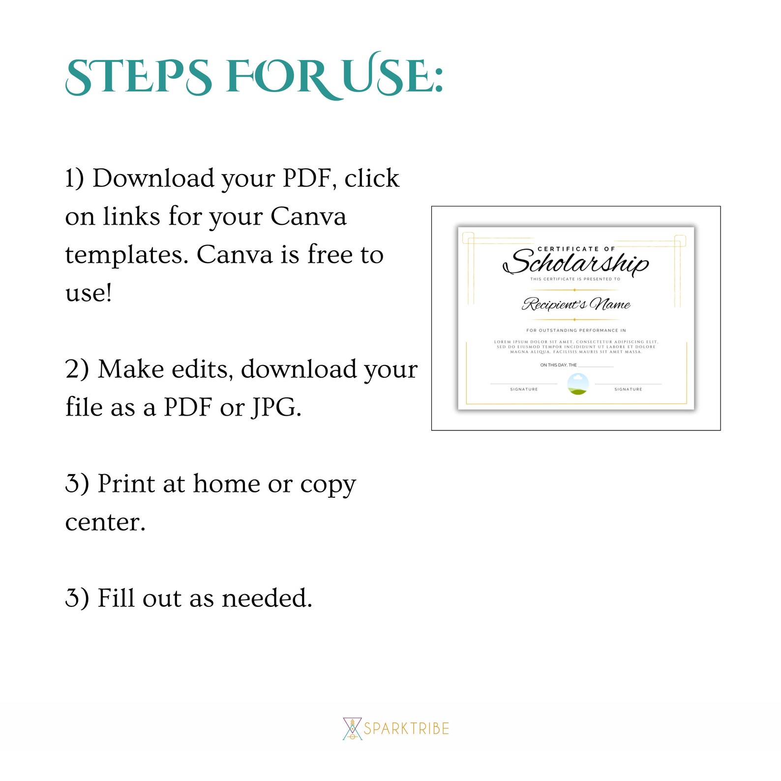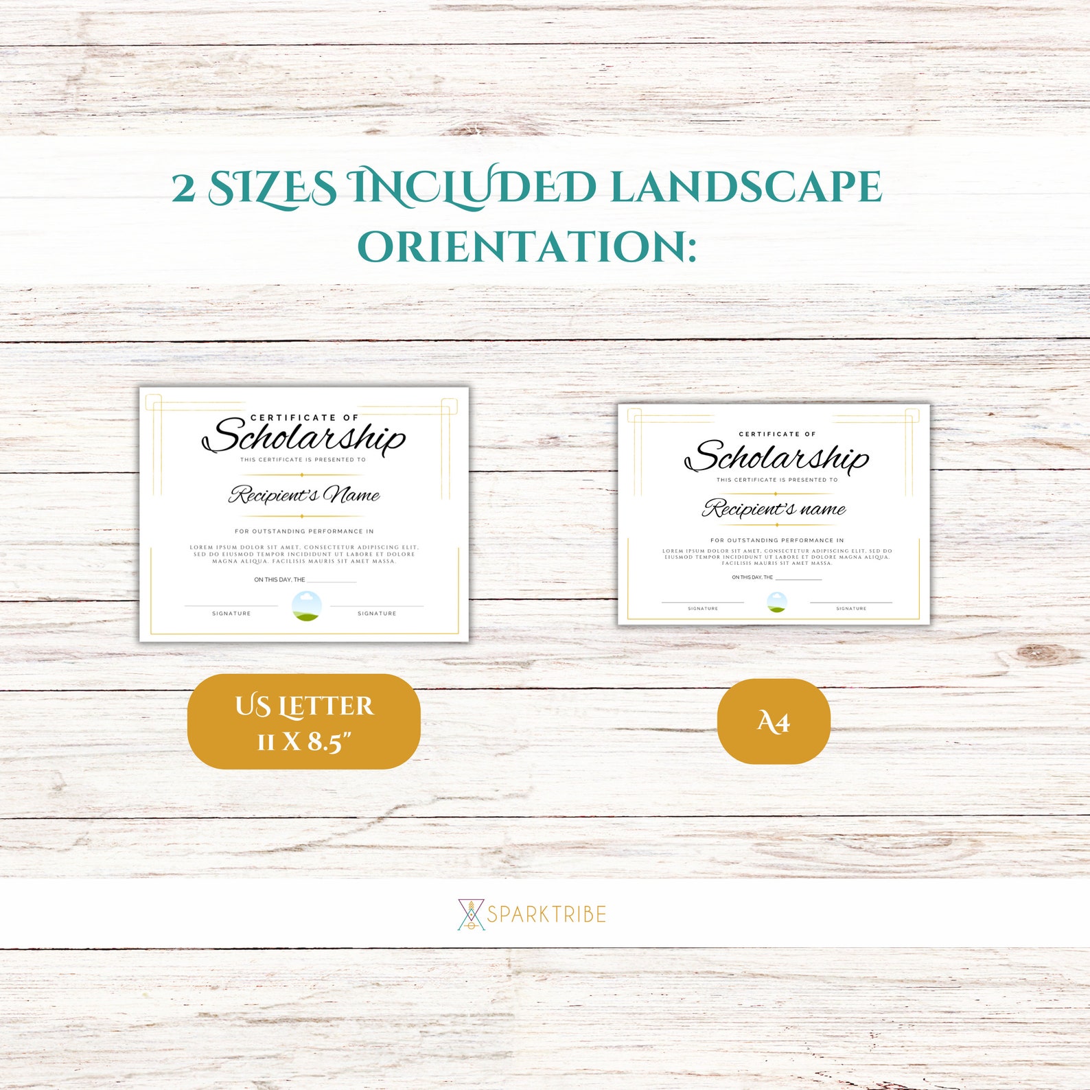 Scholarship Award Certificate Template INSTANT DOWNLOAD Editable