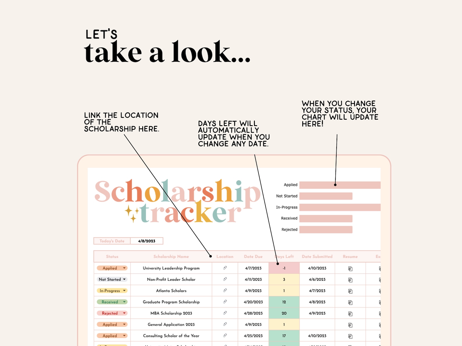 Scholarship Application Tracker Template Google Sheets Excel