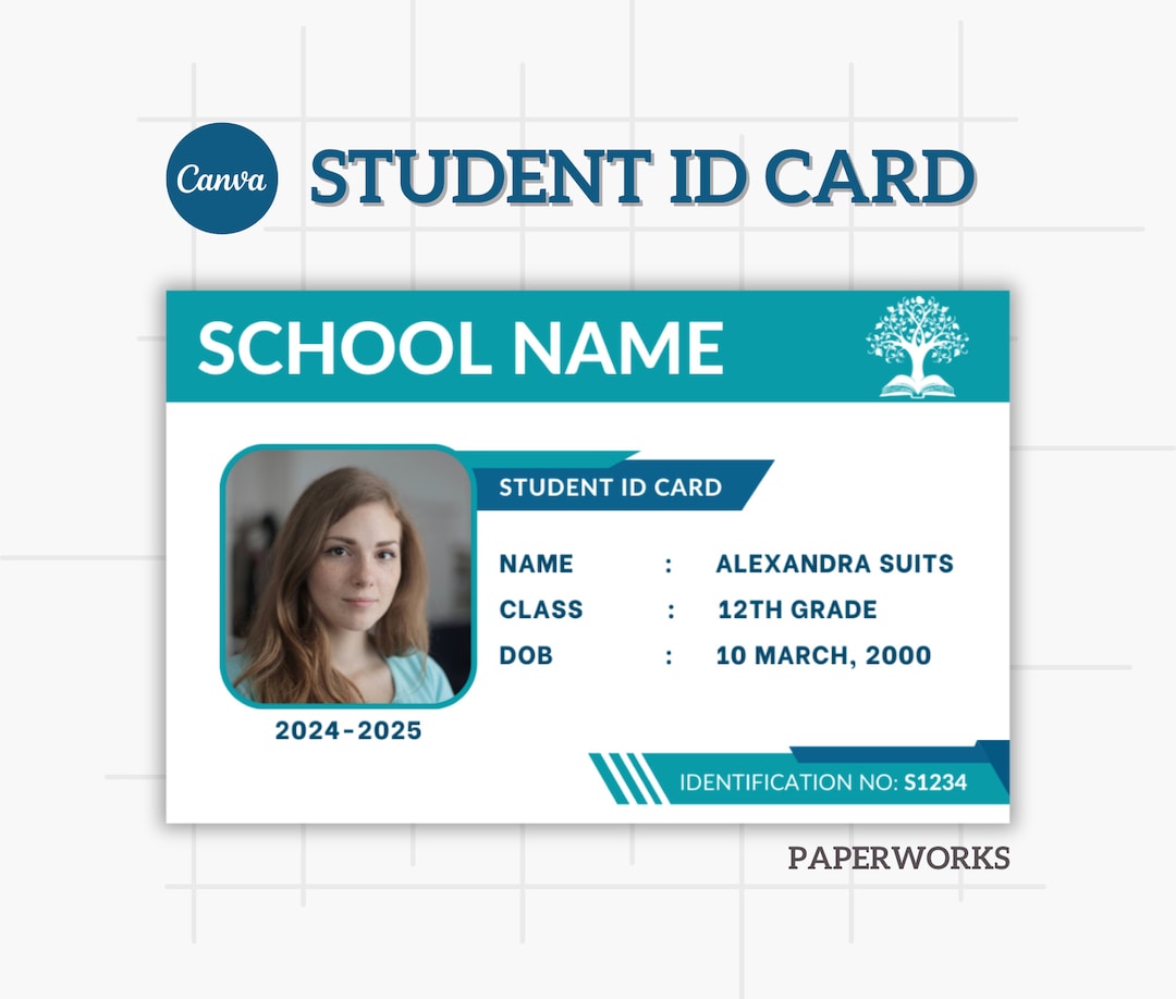 Student ID Card Template Editable School ID Homeschool Teacher Badge
