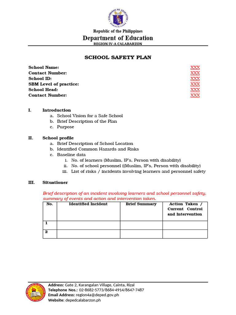 Safety Plan Template For Schools prntbl concejomunicipaldechinu gov co