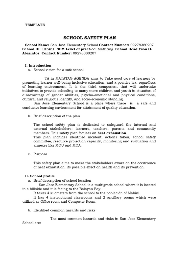 Here are some of the images for School Safety Plan Template that we found in our website database.
