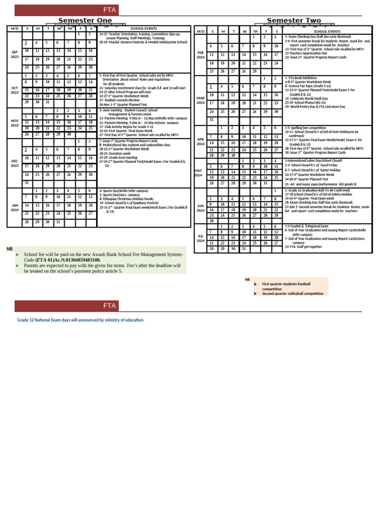 School Calendar Fee Info PDF Academic Term