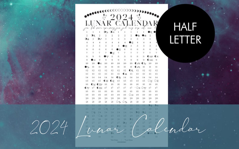 2024 Printable Lunar Calendar for Half Letter Rings Planner Discbound