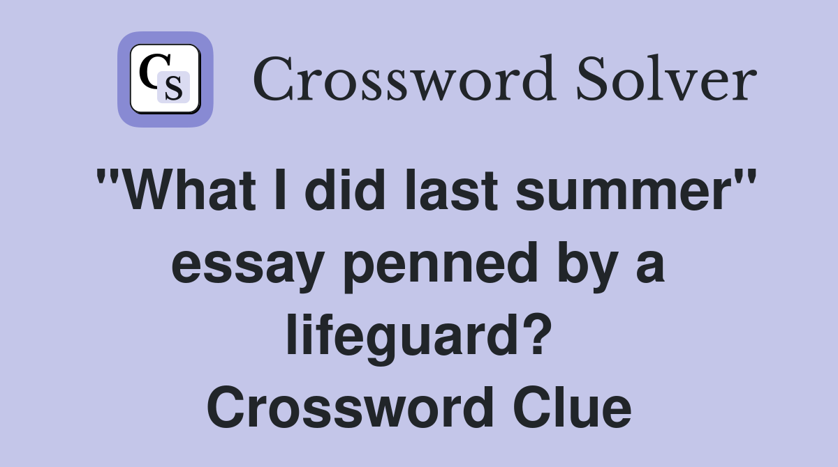 quot What I did last summer quot essay penned by a lifeguard? Crossword Clue