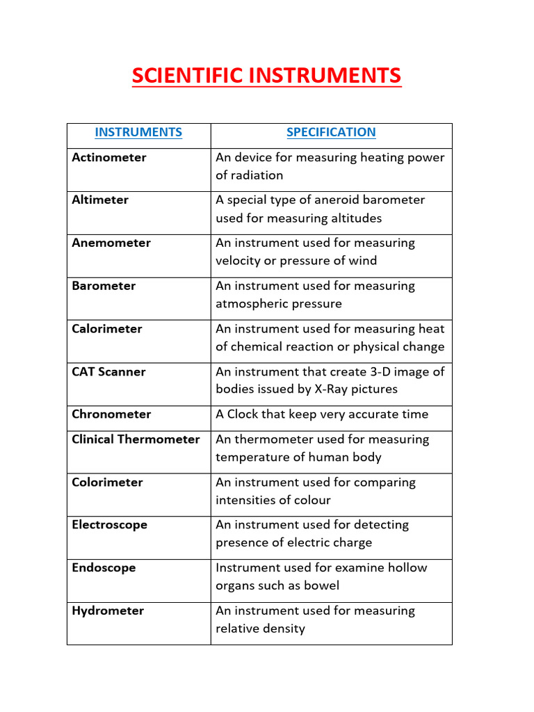 Scientific Instruments List PDF Pressure Liquids