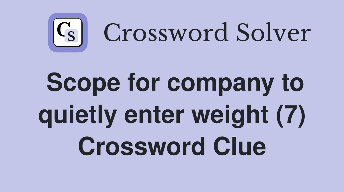 Scope for company to quietly enter weight (7) Crossword Clue Answers