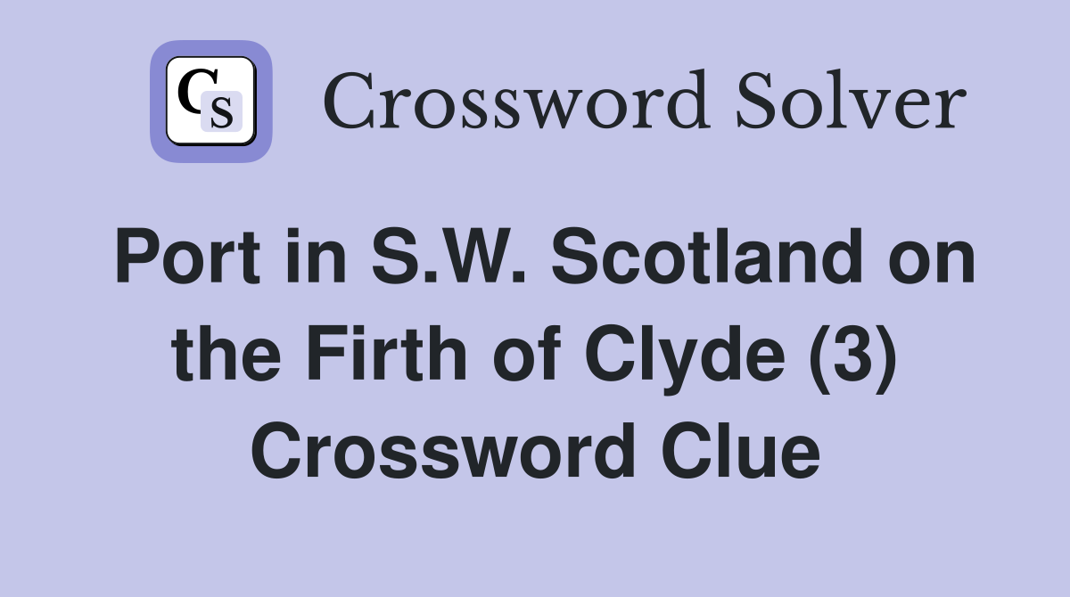 Port in S W Scotland on the Firth of Clyde (3) Crossword Clue