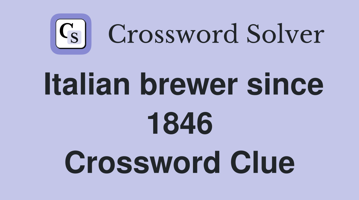 Italian brewer since 1846 Crossword Clue Answers Crossword Solver