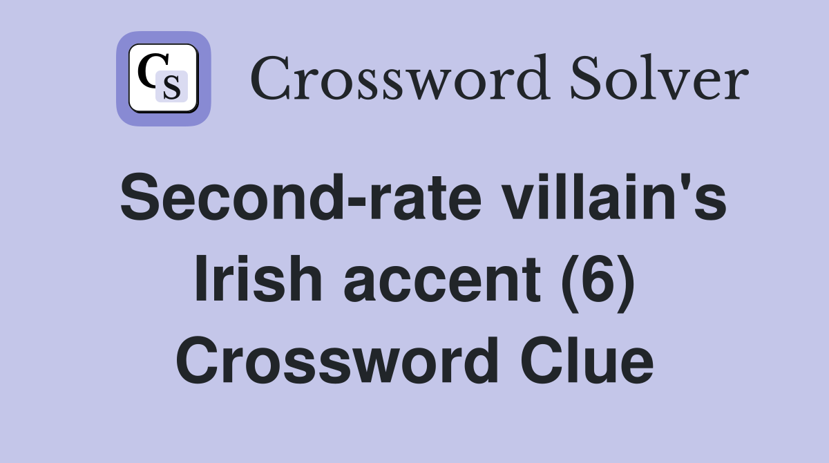 Second rate villain #39 s Irish accent (6) Crossword Clue Answers