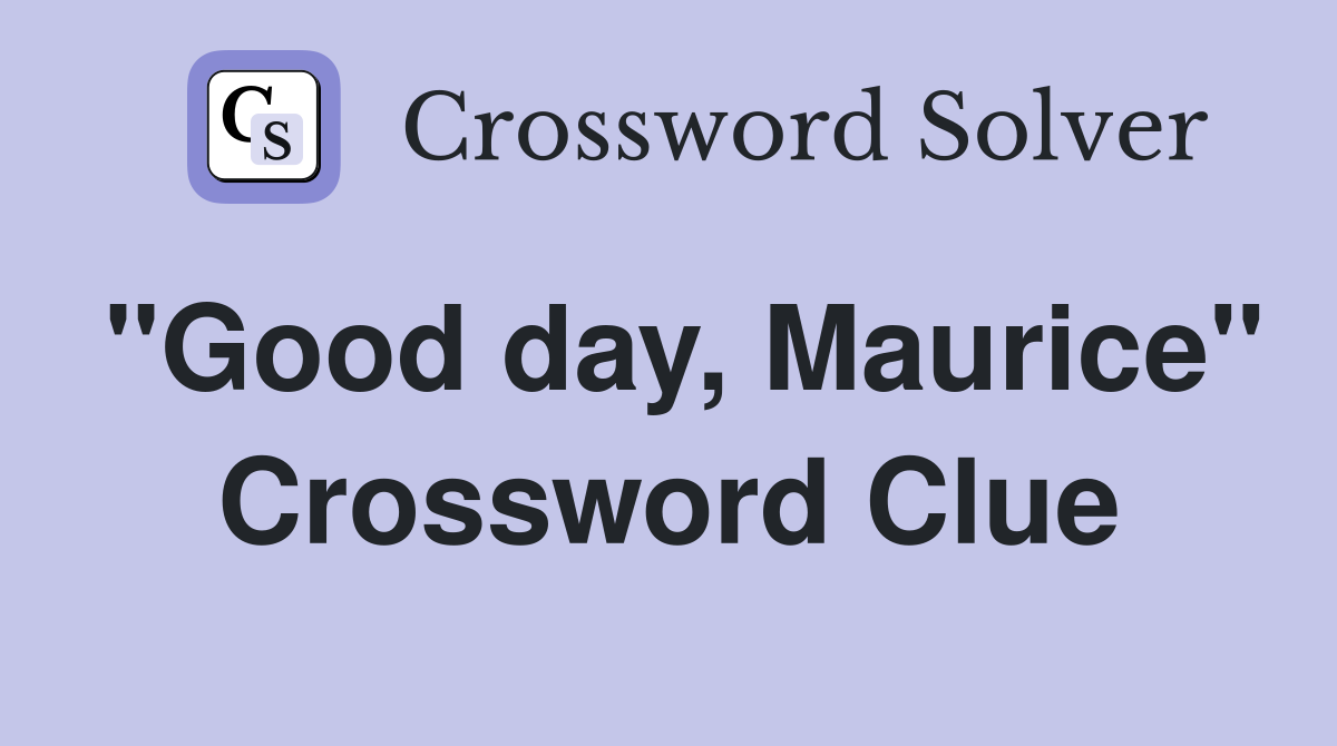 quot Good day Maurice quot Crossword Clue Answers Crossword Solver