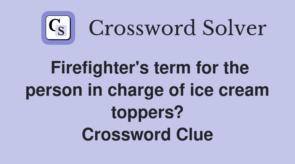 Firefighter #39 s term for the person in charge of ice cream toppers