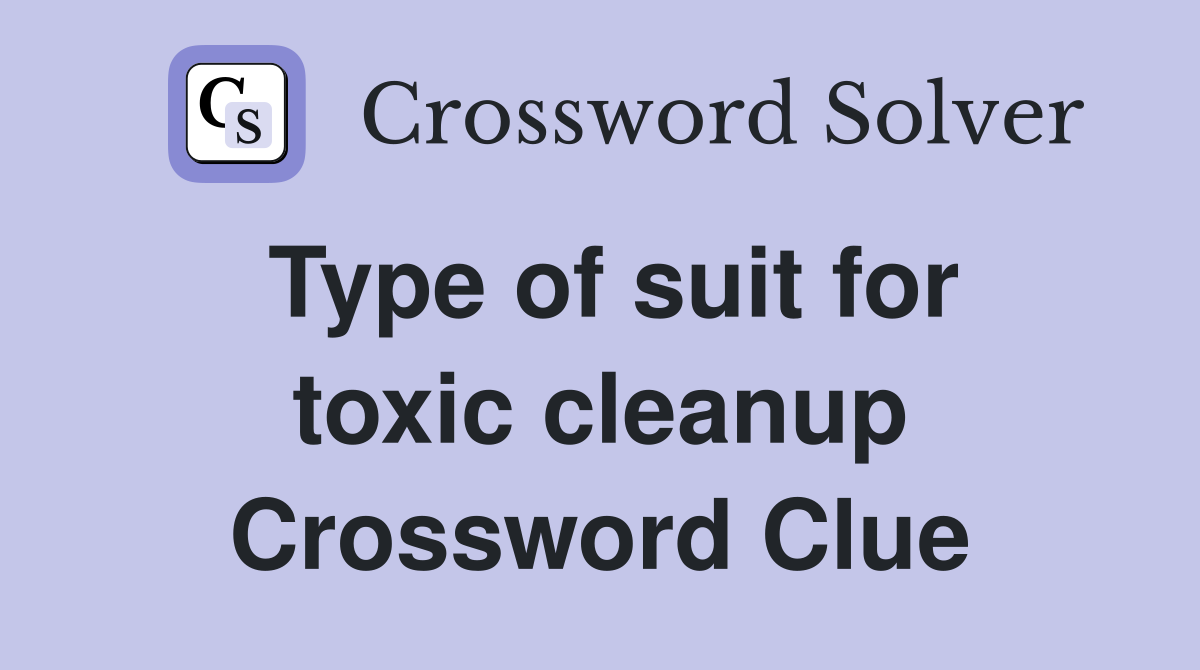 Type of suit for toxic cleanup Crossword Clue Answers Crossword Solver