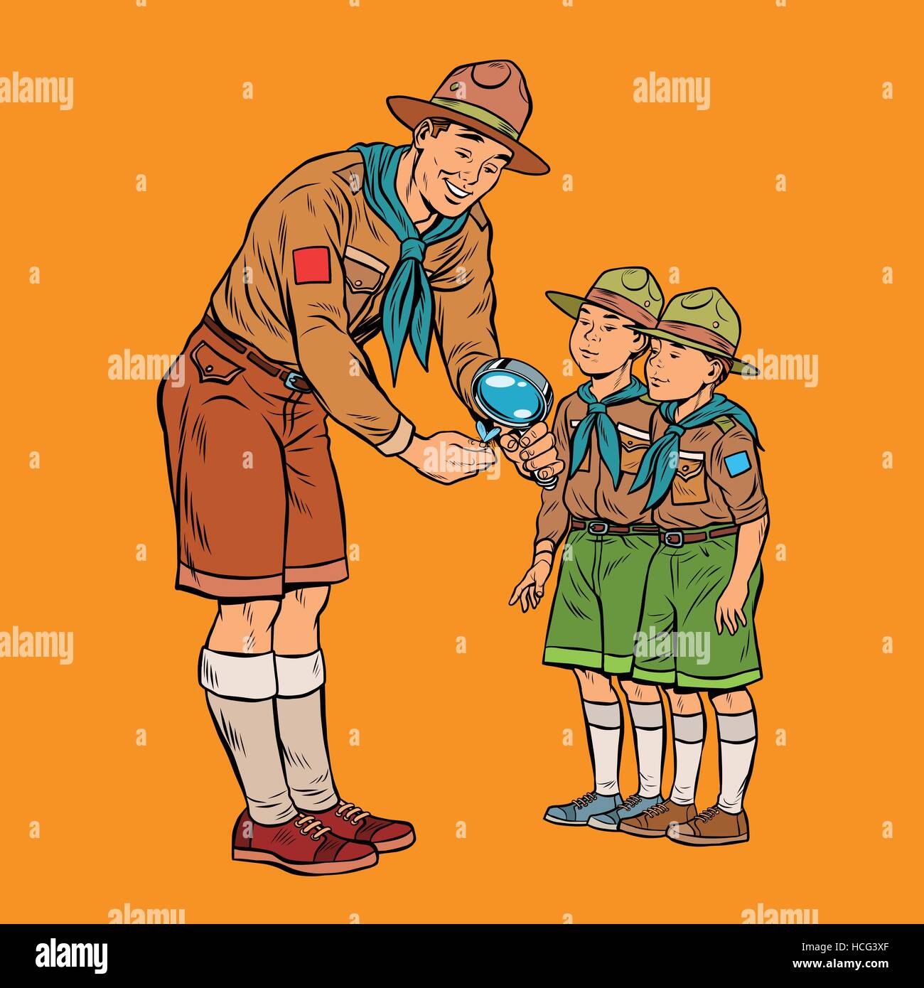 scoutmaster shows little insect to young scouts Stock Vector Image