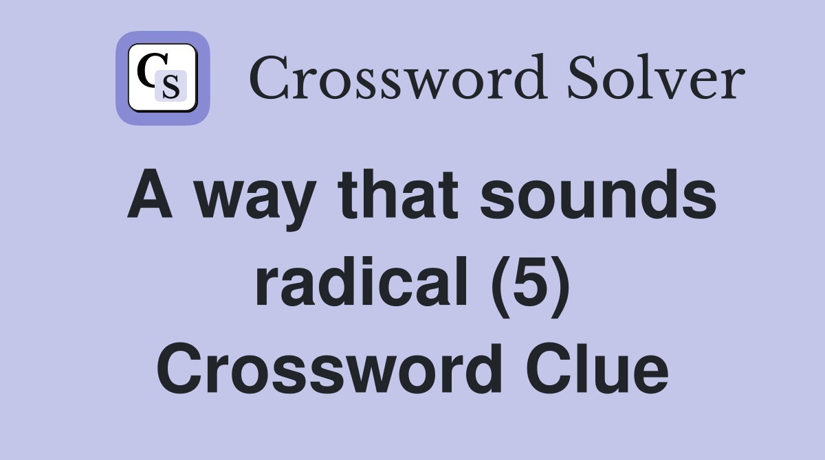A way that sounds radical (5) Crossword Clue Answers Crossword Solver