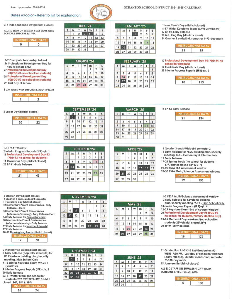 Student Calendar 2024 25 The Scranton School for Deaf Hard of