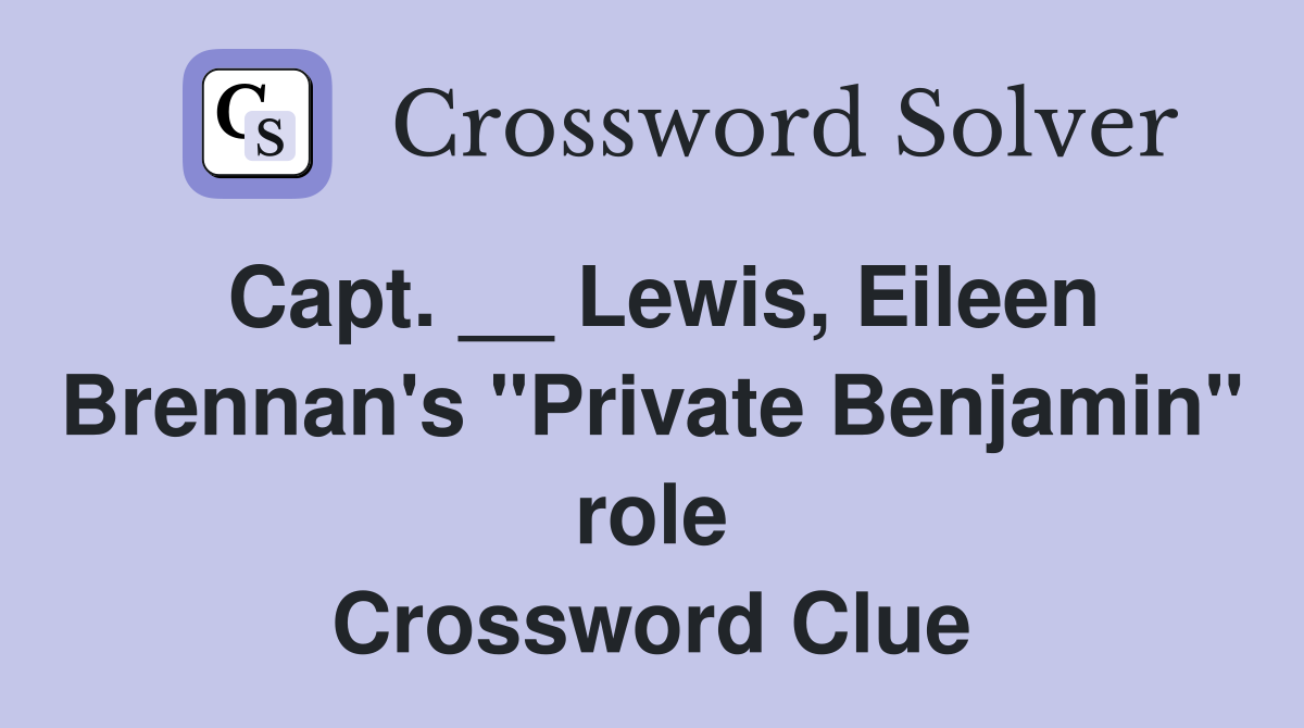 Capt Lewis Eileen Brennan #39 s quot Private Benjamin quot role Crossword