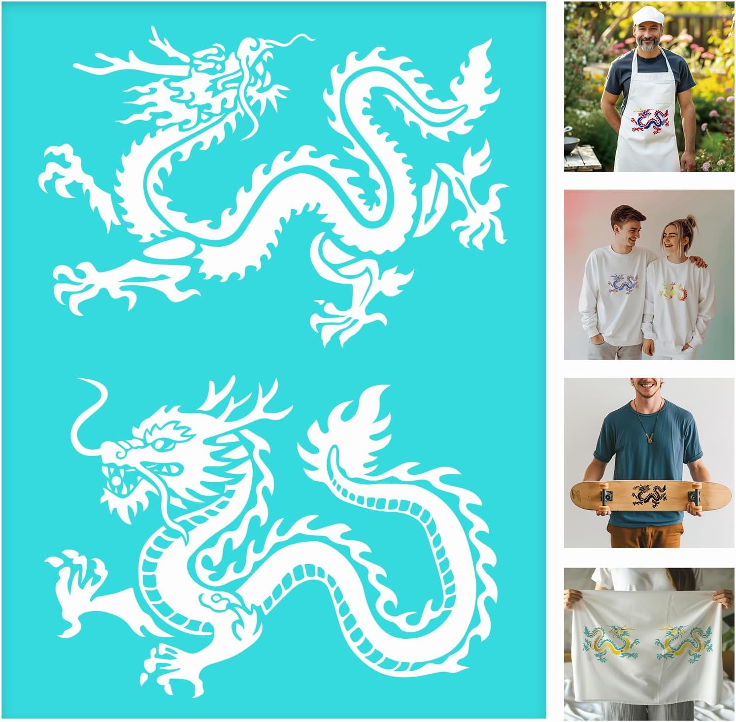 2 pcs Dragon Print Stencils Chinese Loong Print Templates Screen Print