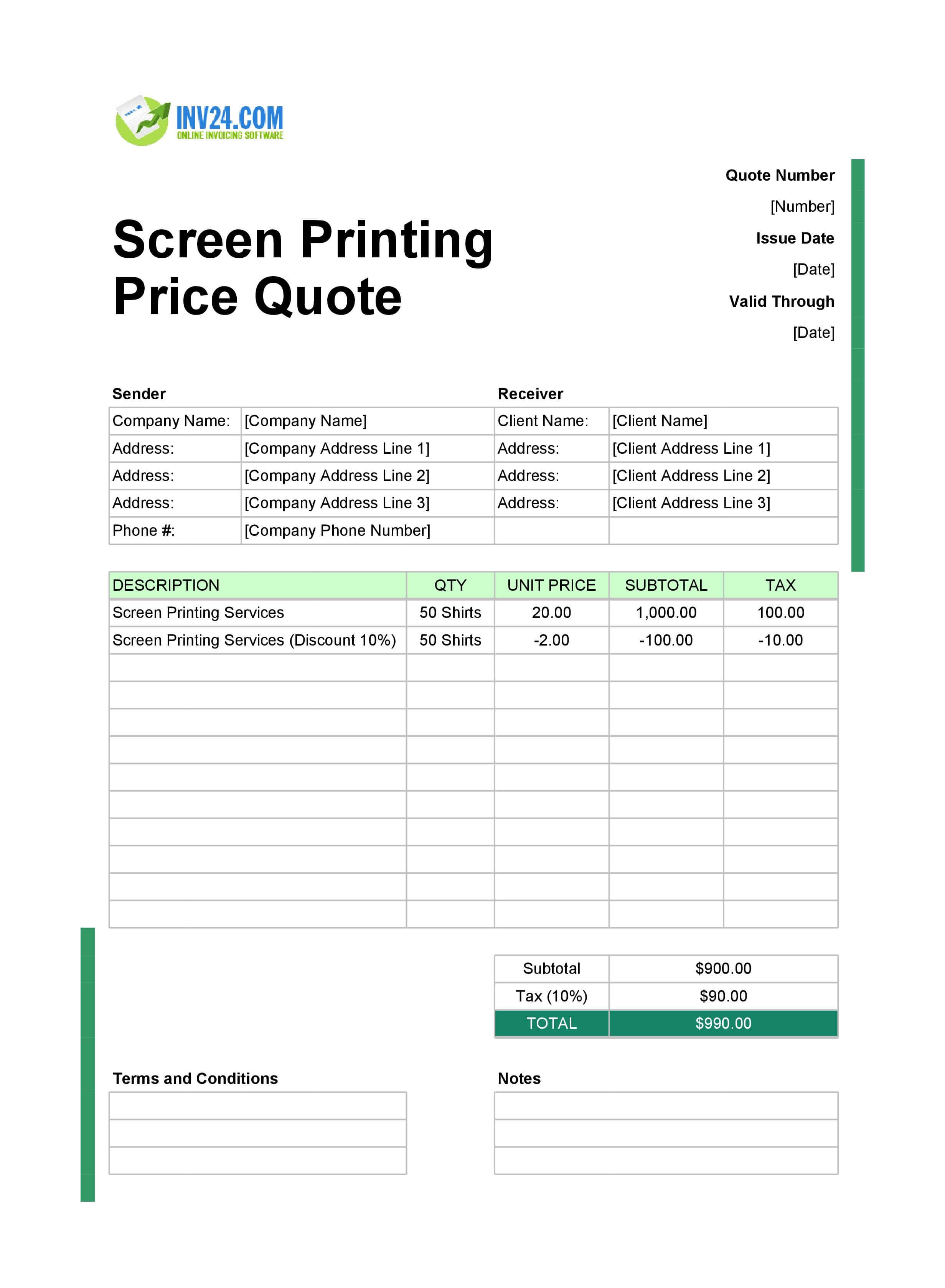 Here are some of the images for Screen Printing Quote Template that we found in our website database.