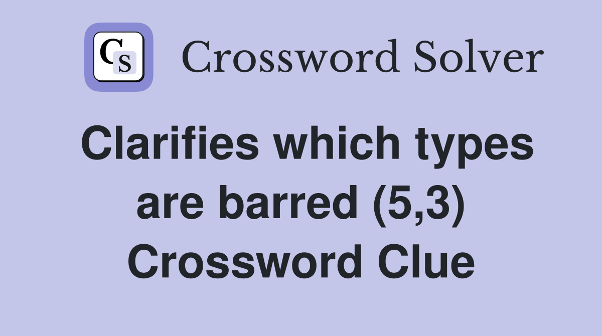 Clarifies which types are barred (5 3) Crossword Clue Answers
