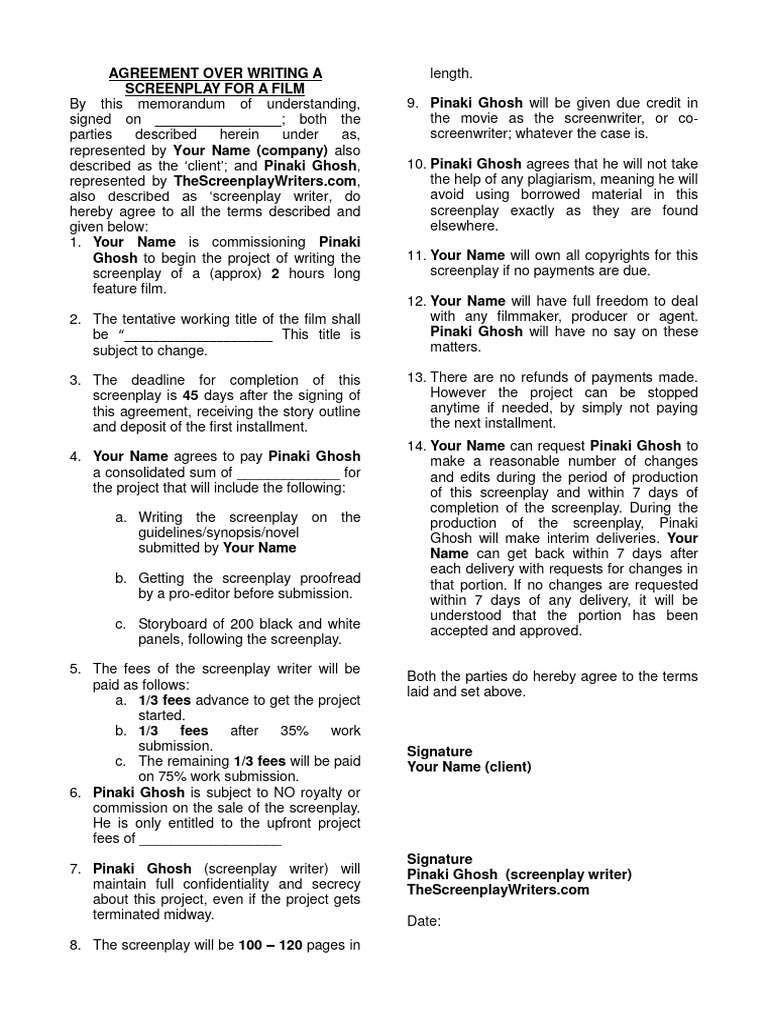 Screenplay Contract Template