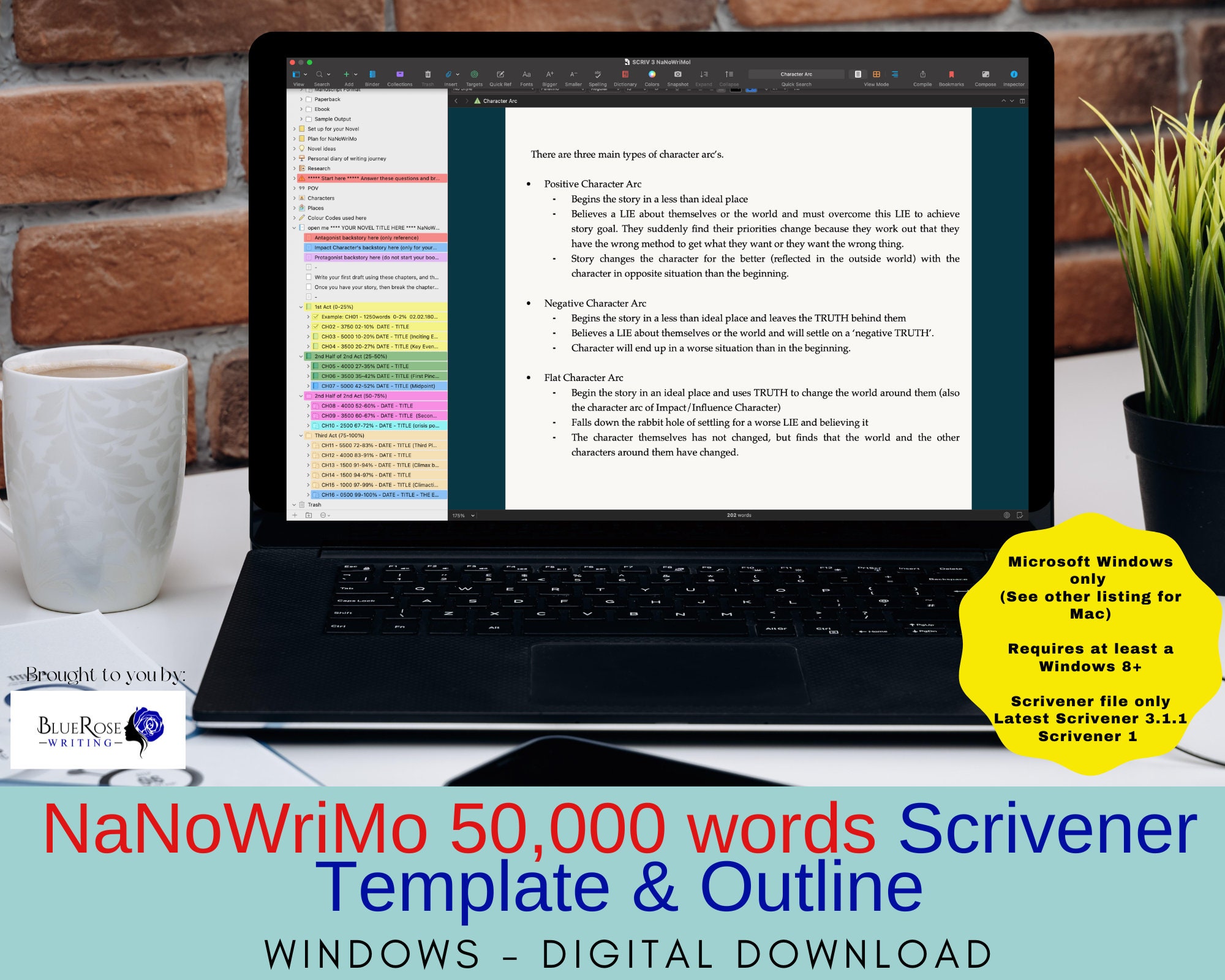 Windows Nanowrimo 50000 Words Scrivener Template Outline Etsy