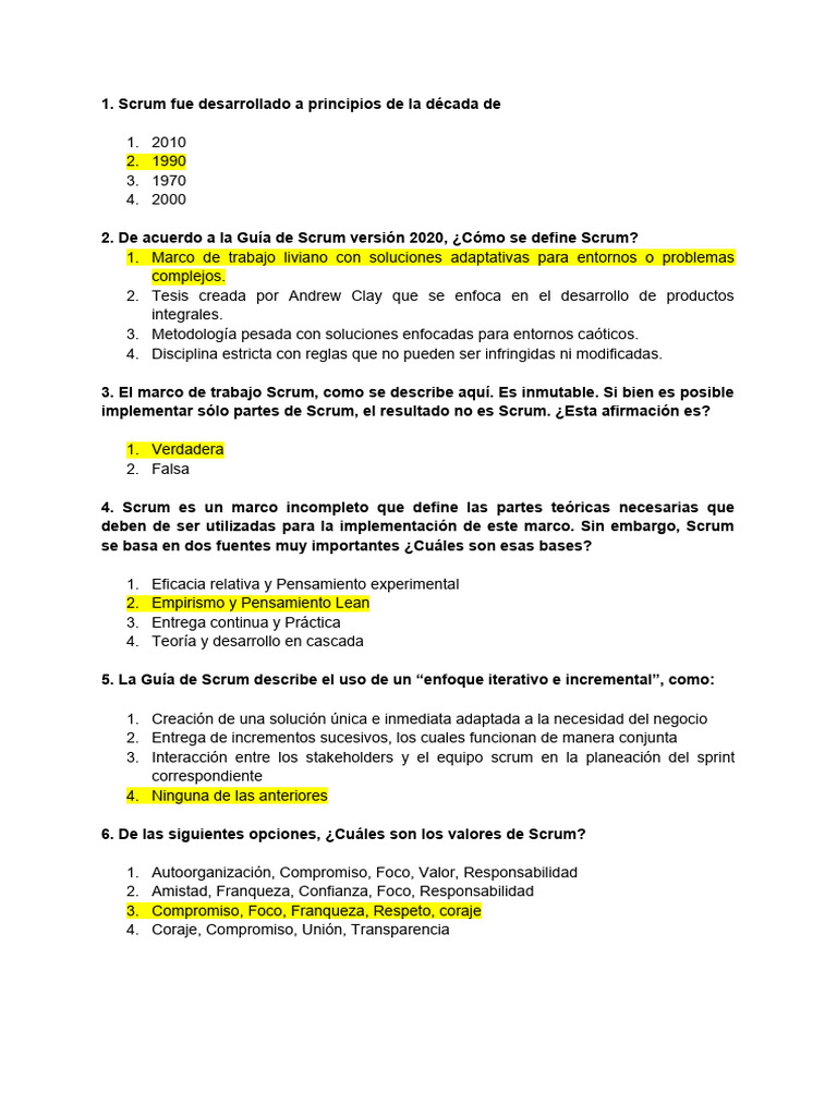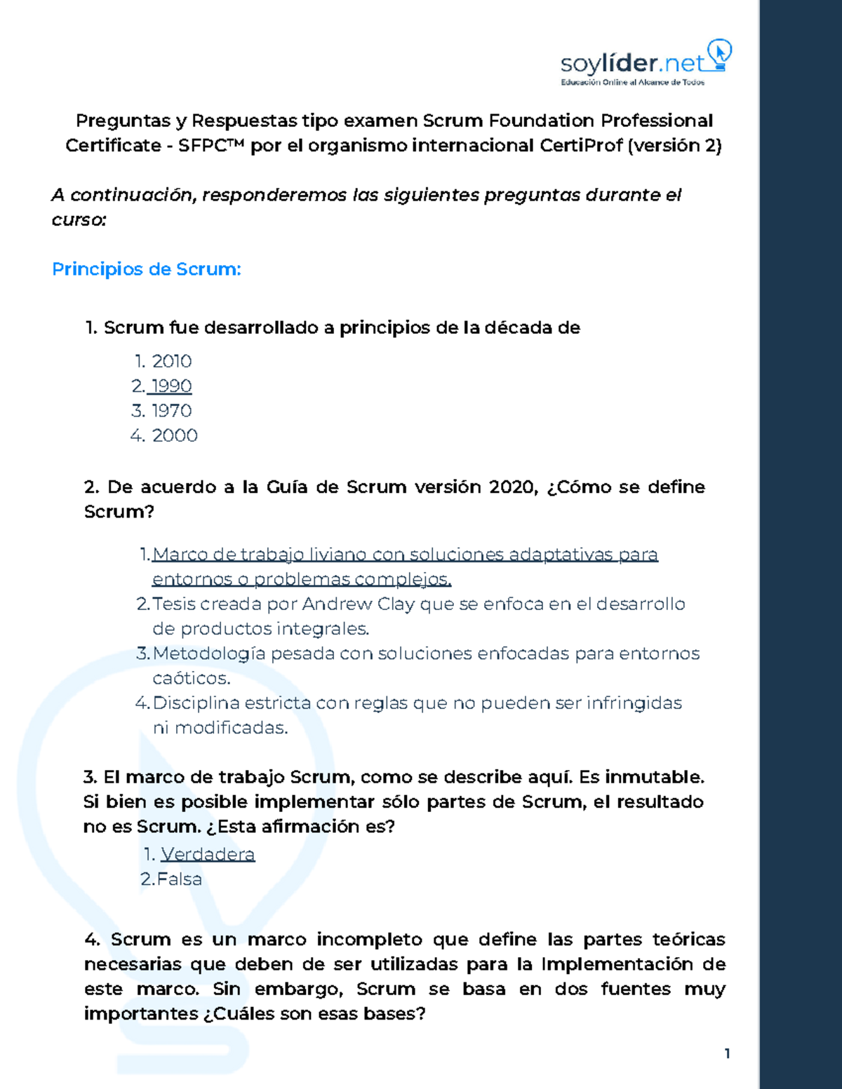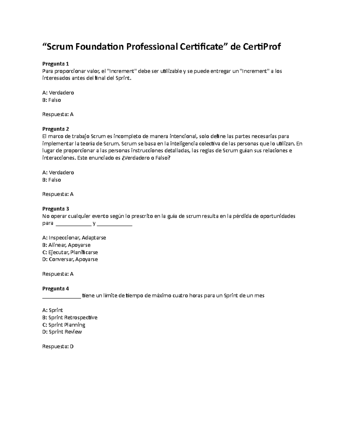 Preguntas y Respuestas tipo examen Scrum Foundation Professional