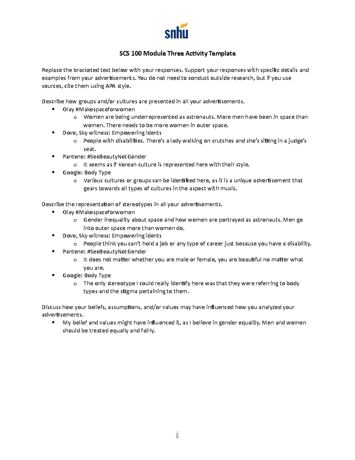 SCS 100 Module Three Activity Template SCS 100 SNHU Studocu