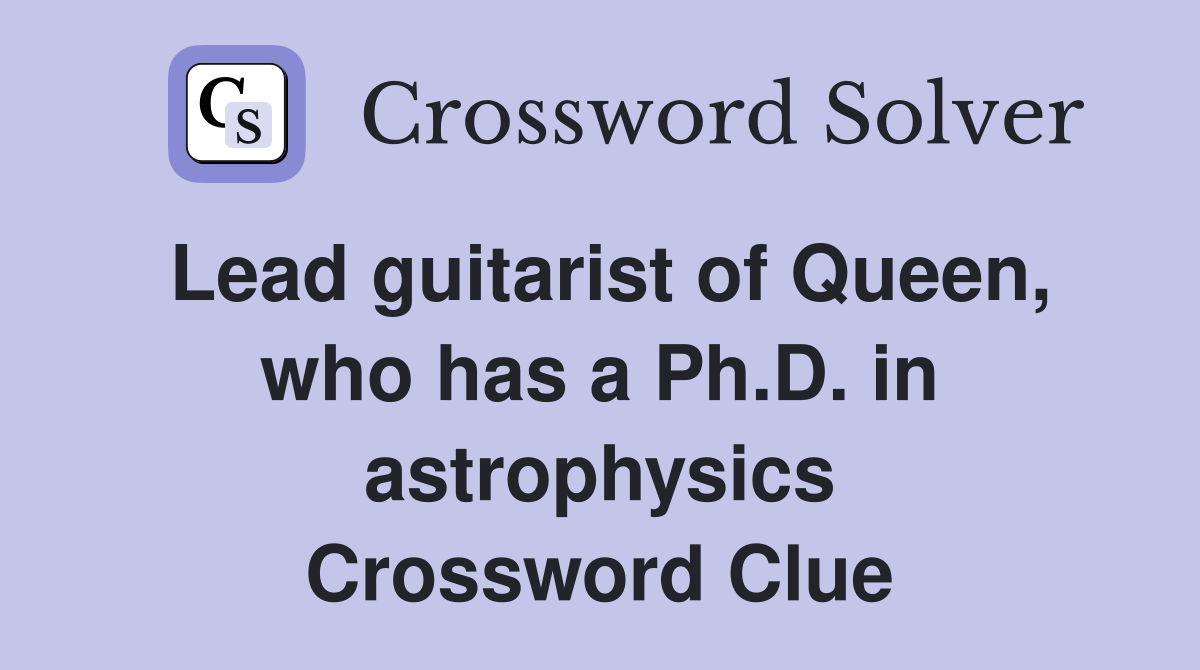 Lead guitarist of Queen who has a Ph D in astrophysics Crossword