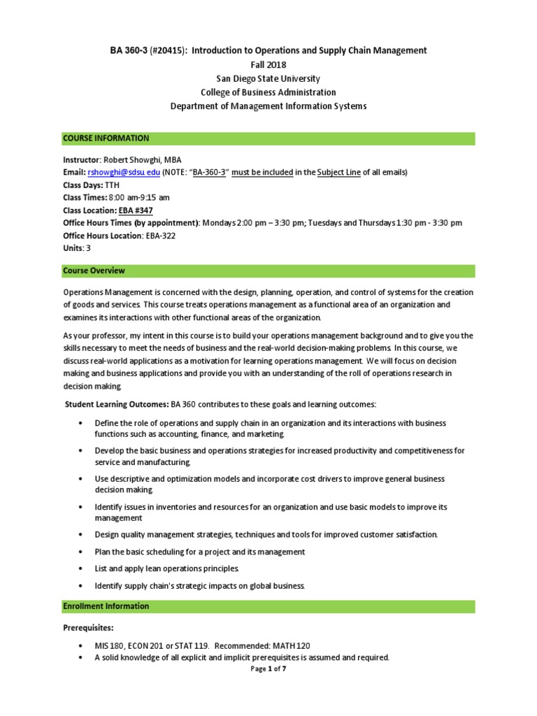 SDSU BA360 Syllabus PDF Homework Test (Assessment)
