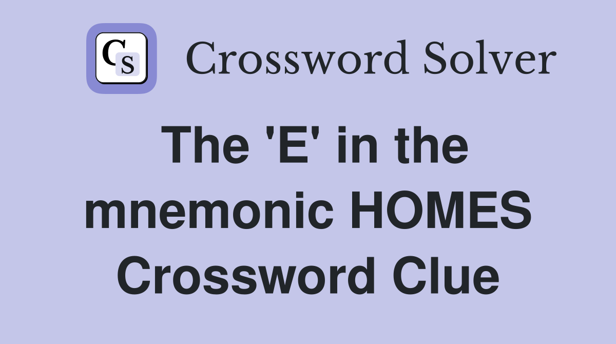 The #39 E #39 in the mnemonic HOMES Crossword Clue Answers Crossword Solver