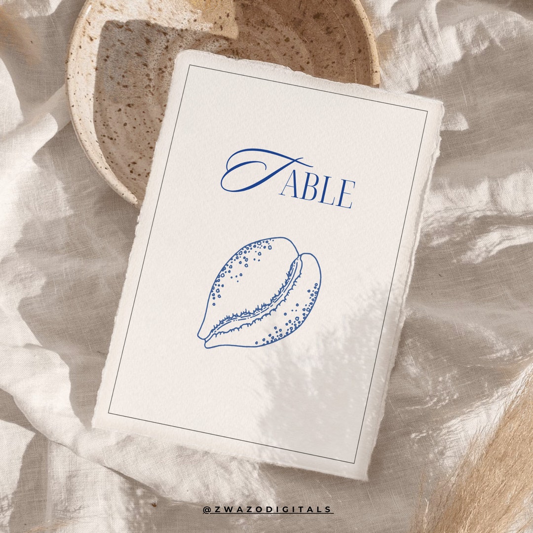 Seashell Beach Wedding Table Numbers: Coastal Canva Template (digital