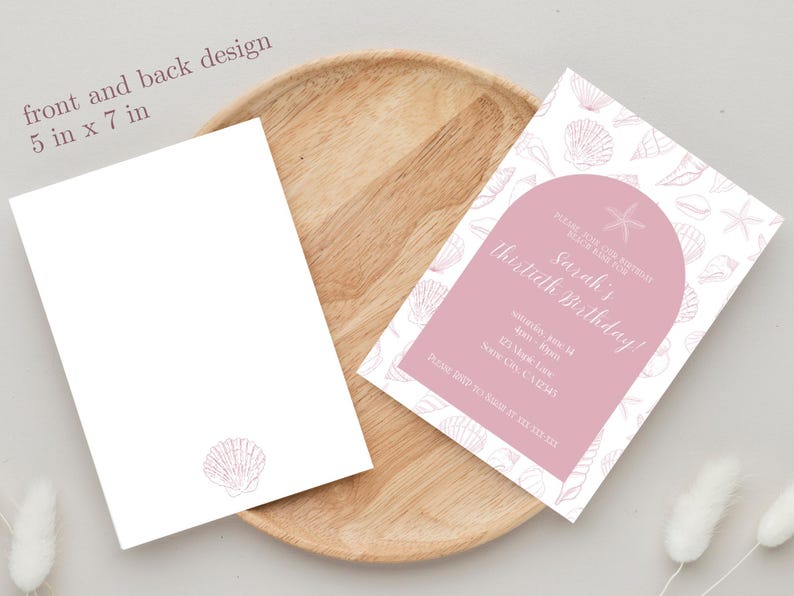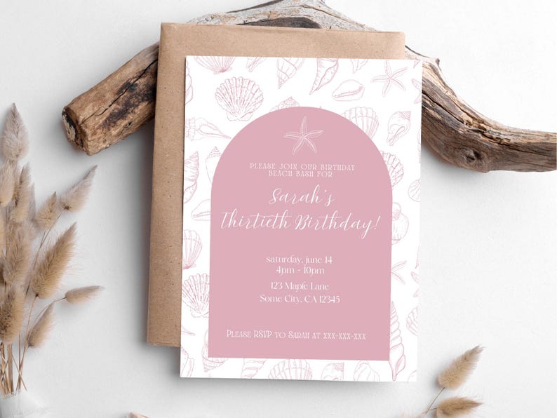 Dusty Pink Seashell Birthday Invitation Template: Canva Editable