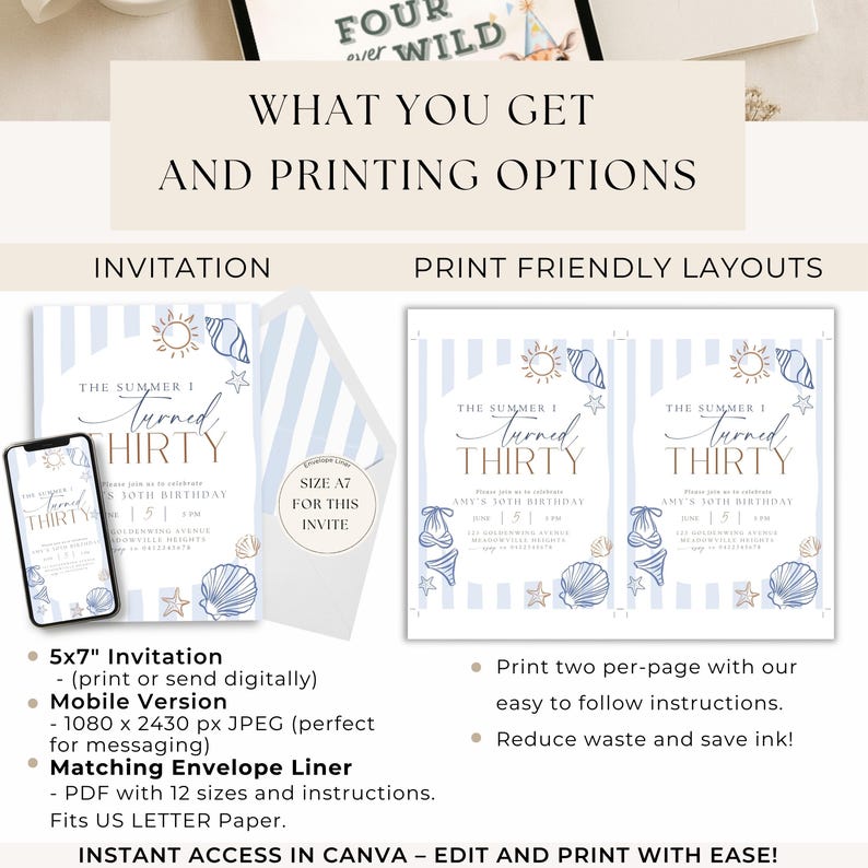 Editable the Summer I Turned Thirty Invitation for Her 30th Birthday