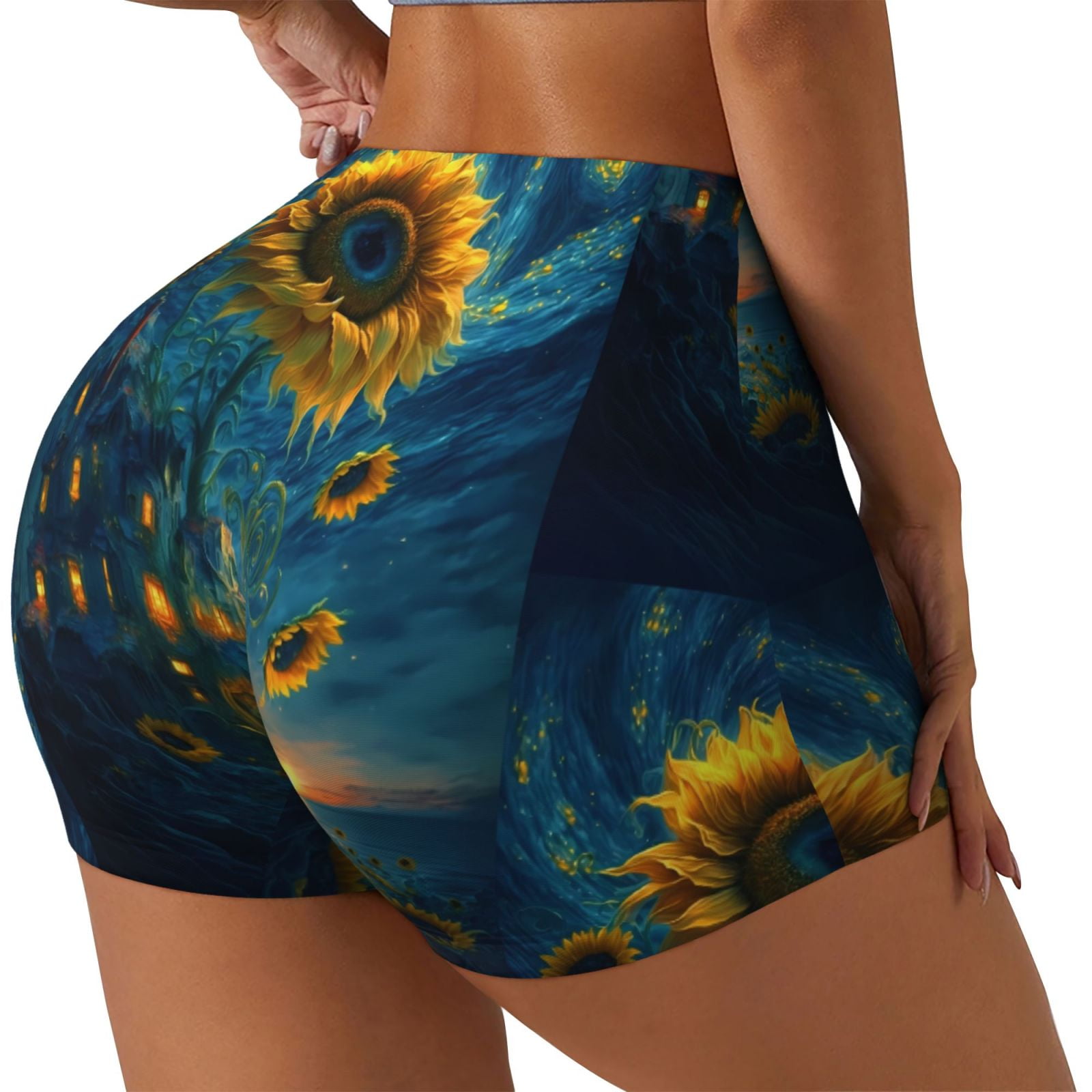 Haiem Sunflower Castle Starry Sky No Front Seam Biker Shorts for Women
